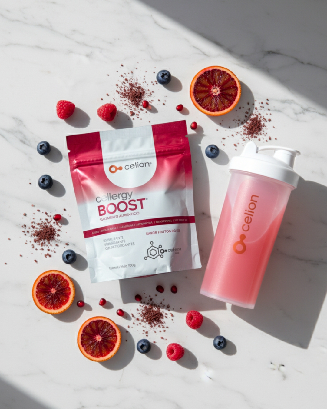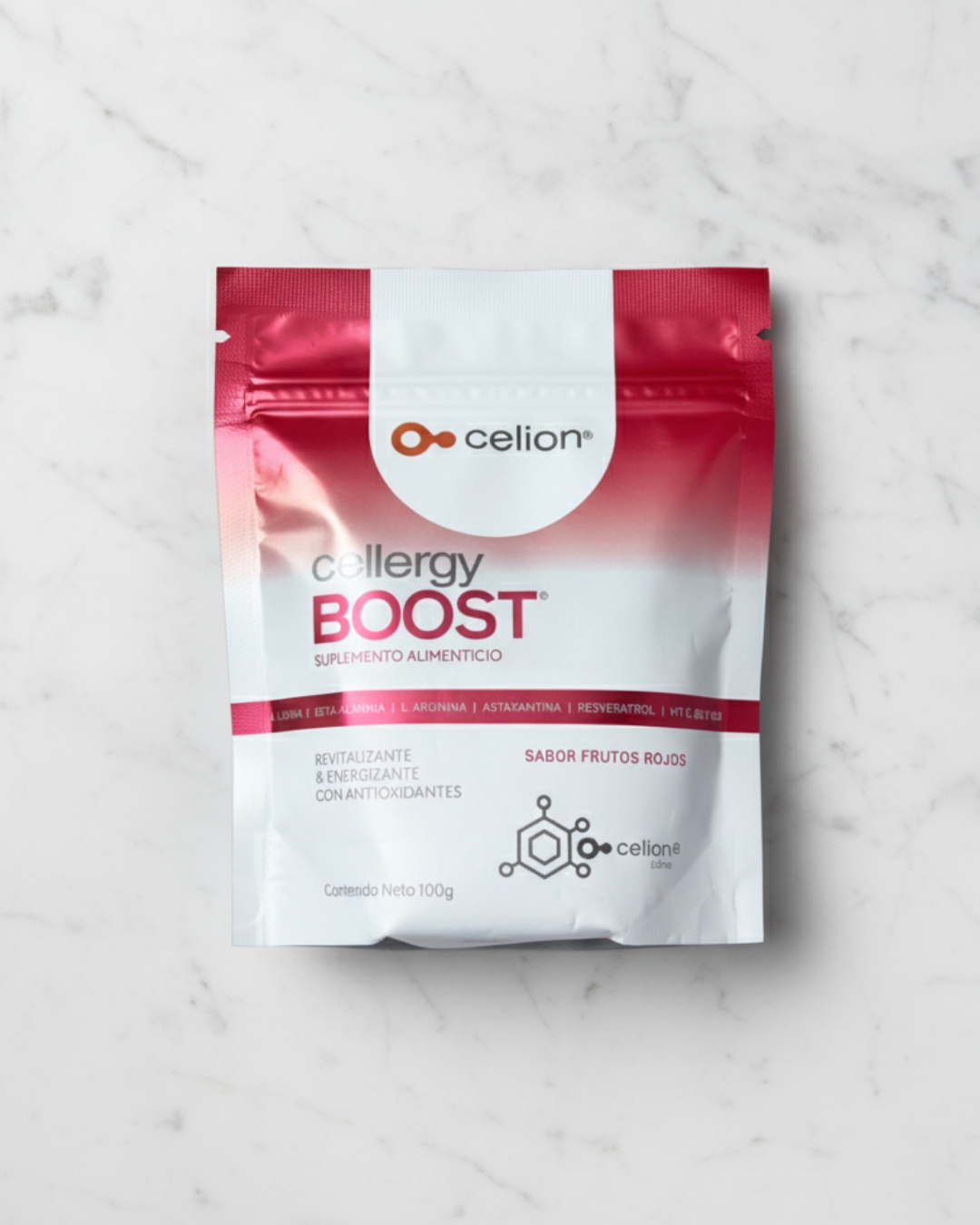 Cellergy Boost es un suplemento en polvo con sabor a frutos rojos, diseñado para revitalizar tus células, proporcionar energía y apoyar el bienestar físico y mental. Su fórmula combina potentes ingredientes antioxidantes y aminoácidos esenciales que contribuyen al funcionamiento celular, la claridad mental y el rendimiento diario.